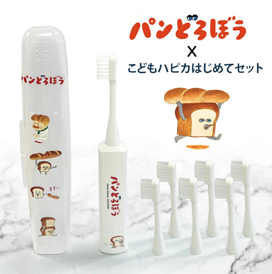 Hapika First Set Bread Dribble Electric Toothbrush for Kids with 6 Replacement Brushes, Made in Japan